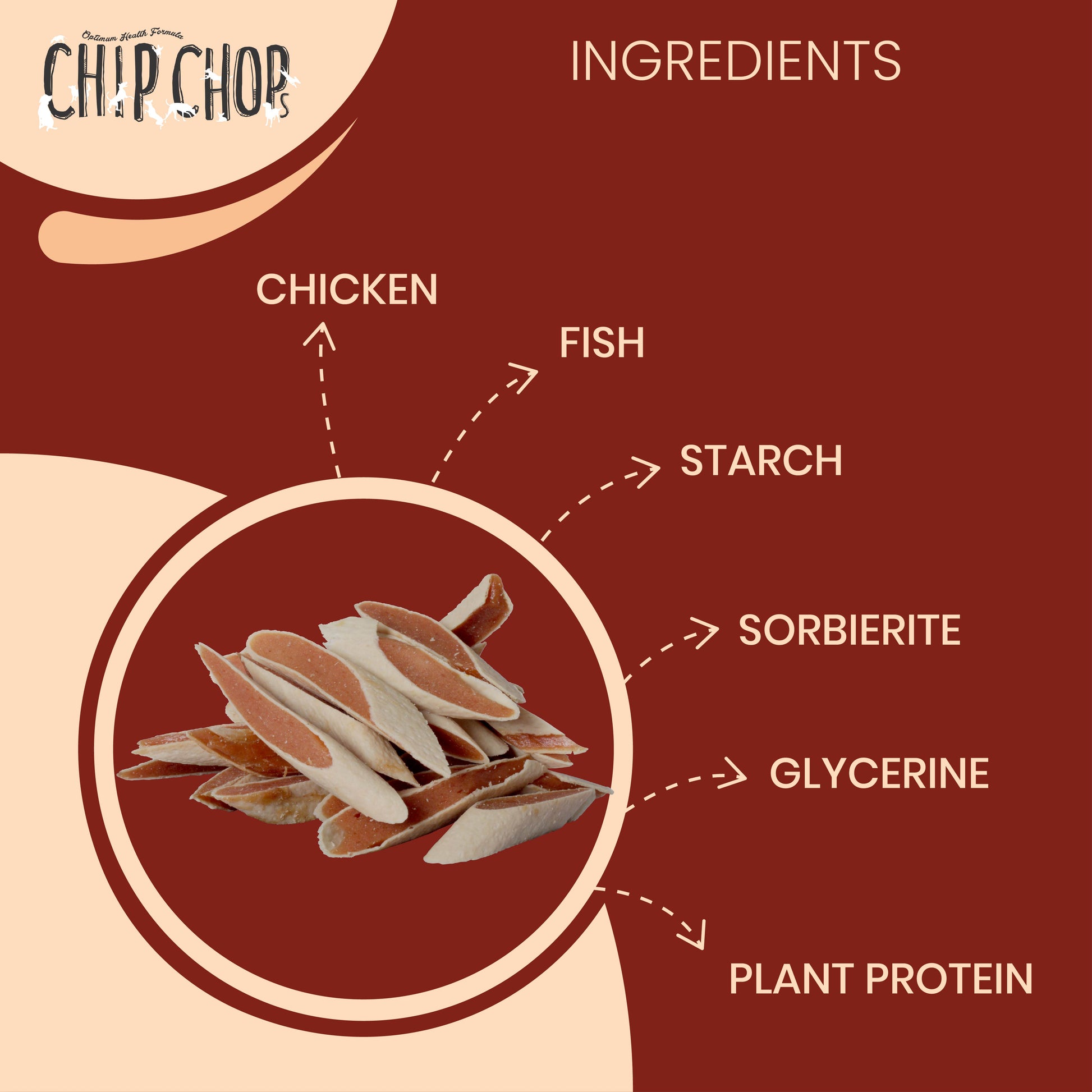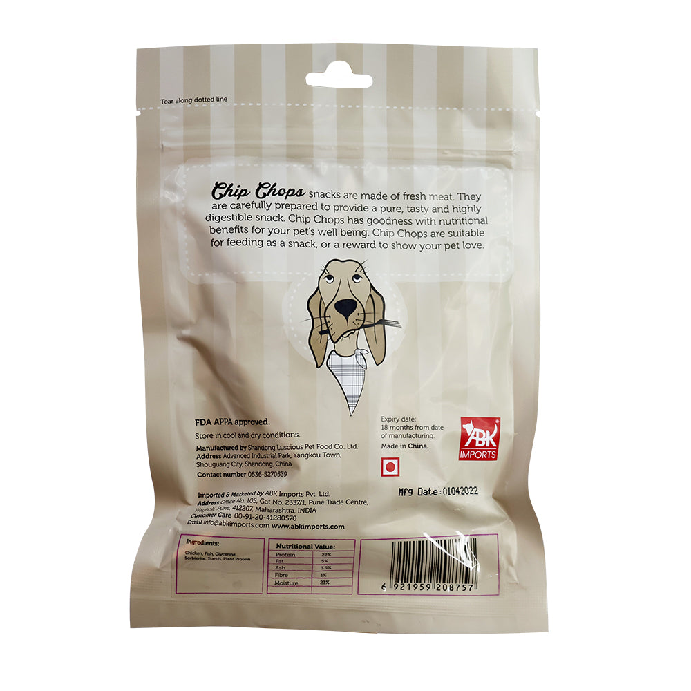 Chip Chops Chicken Pasta Treat - Puppies and Adult is made of fresh Chicken which makes up to the 85% meat content in the treat and is a source of highly digestible protein that helps in strengthening the bones and muscles is a tasty treat which has balanced nutrients, no added sugar and helps in keeping the breath fresh. These Treats are packed in an easily resealable packet for your convenience.