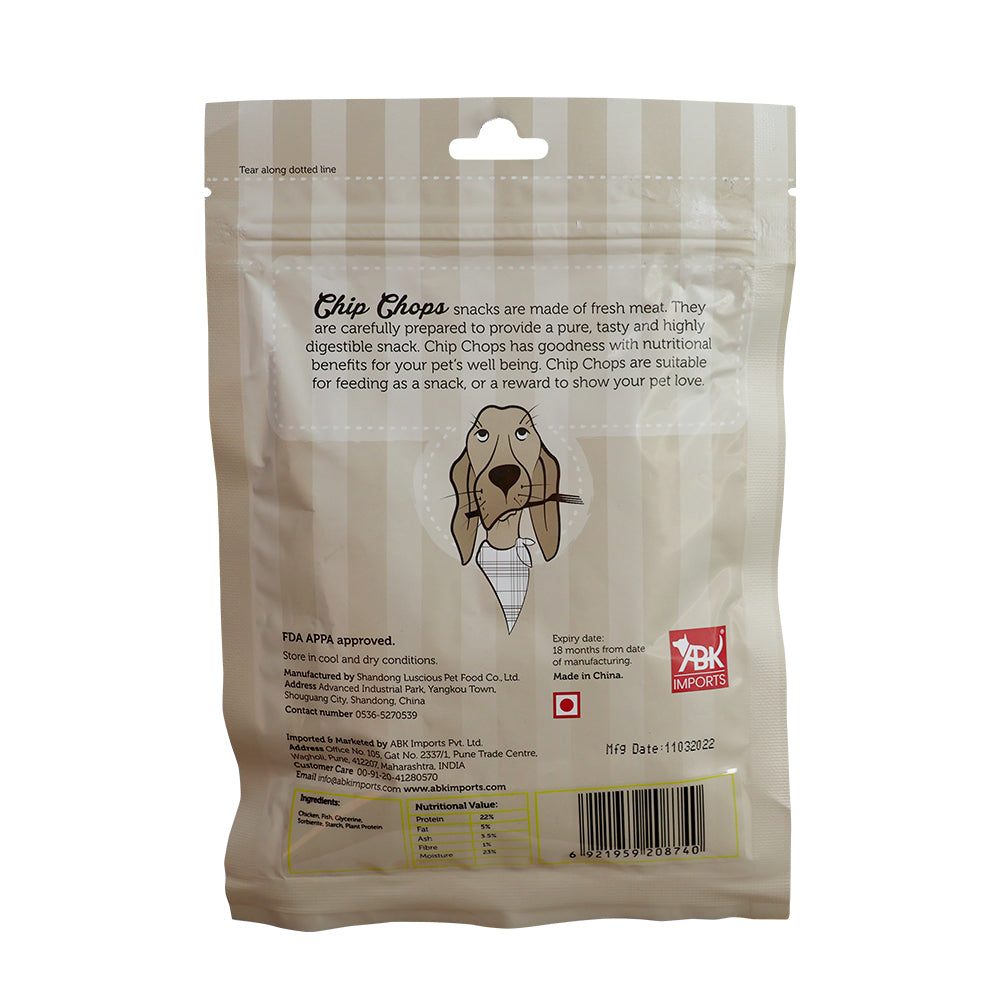 Chip Chops Chicken & Fish Sushi Rolls - Puppies and Adult are made of fresh Chicken & Fish which makes up to the 85% meat content in the treat and is a source of highly digestible protein that helps in strengthening the bones and muscles is a tasty treat which has balanced nutrients, no added sugar and helps in keeping the breath fresh. These Treats are packed in an easily resealable packet for your convenience.